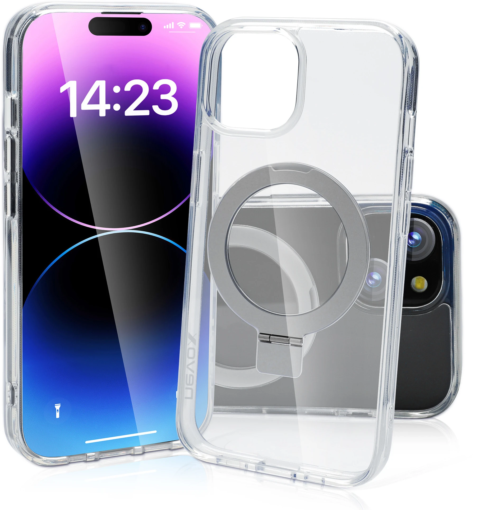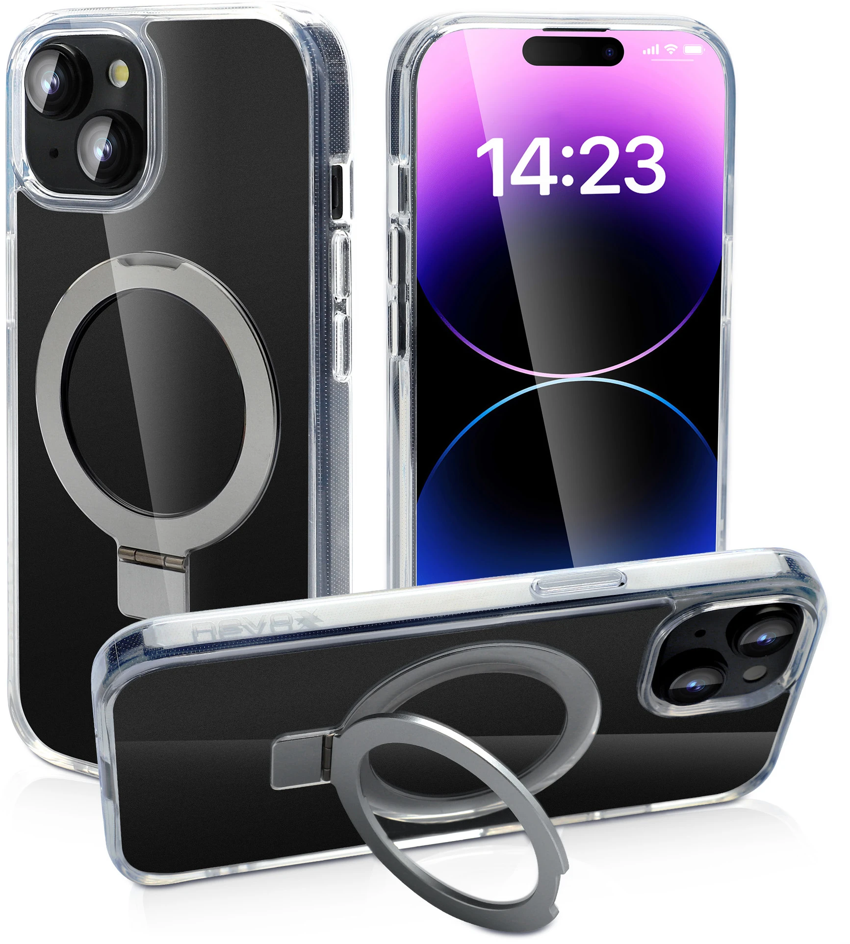 Nevox StyleShell SHOCKFlex mit Standfunktion iPhone 15 Plus MagSafe Transparent
