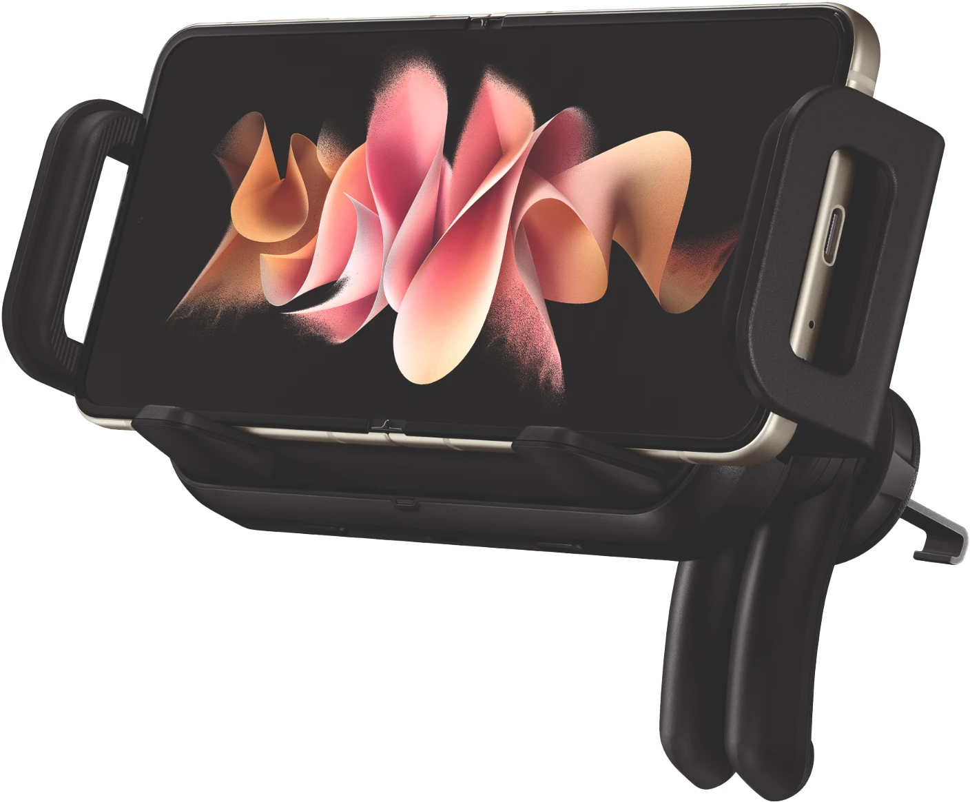 Der Wireless Car Charger ist drehbar, sodass du deinen Bildschirm im Hoch- oder Querformat anzeigen lassen kannst. Und da der Charger am Luftauslass des Autos passt, ist dein Smartphone sicher befestigt.